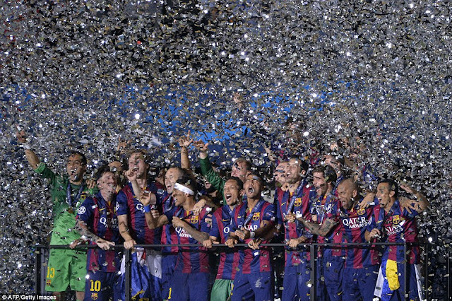 Barcelona lift the champions league trophy for the fifth time with a 3-1 defeat against Juventus at Berlin last night. Thrilling goals from Rakitic, Suarez and Neymar put them off the limit and place them above. More photos after the cut...